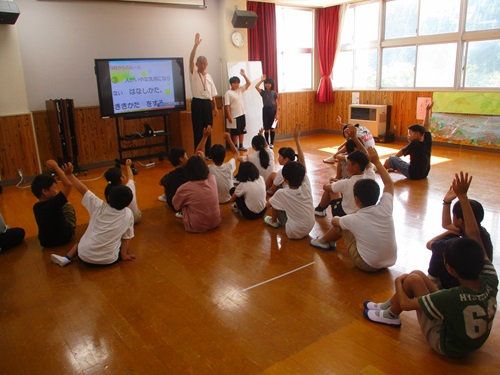 吉和支所の橋本さん,山本さんがお話をしてくださいました。(小3〜中1) 6/1(火) | |