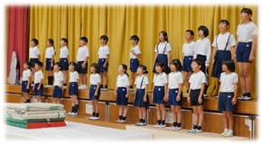 全校朝会で,2年生から6年生の