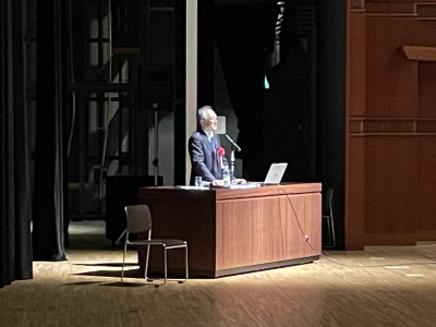 午前は県内各中学校の実践を交流・協議し、午後は廿日市商工会議所会頭 渋谷 憲和 様に記念講演をしていただき、研究を深めました。