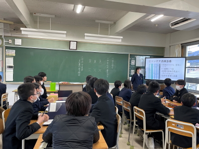 今日は、1年2組と1年3組に協力してもらい、2組が英語科の授業、3組が社会科の授業を公開しました。