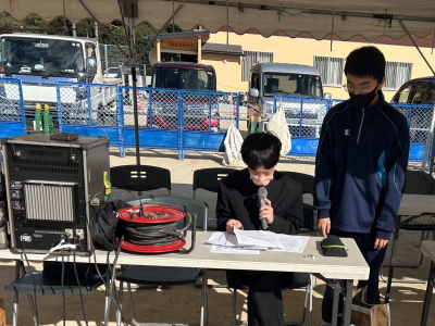 また、このとんど祭りには廿日市中学校の放送部が、ボランティアで進行やアナウンスを担当してくれました。メリハリのある進行で好評でした。放送部のみなさん、ありがとうございました。