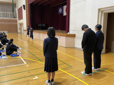 始業式では、校長先生から、昨年、今年と箱根駅伝で活躍した廿日市中学校出身の先輩の話がありました。箱根駅伝を駆け抜けた先輩のように、好きなことに一生懸命地道に取り組み、夢や目標に向かって思いっきりチャレンジする、そんな、1年にしてほしいということでした。