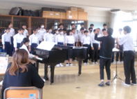 今日は4月1日。この日は、新しく廿日市中学校に赴任された先生方を学校に来ている生徒たちが歓迎します。