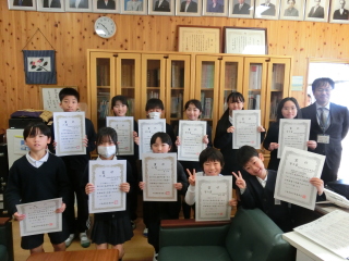 第49回廿日市市人権作品応募(標語の部)に、平良小学校から500名を超える子供たちが作品を作って応募し、優秀な作品として選ばれた子供たちに賞状が校長先生から渡されました。