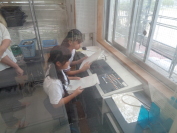 エネルギークリーンセンターでは、ごみ処理の様子を実際に見学し、ごみを持ち上げるクレーンの大きさに子供たちはびっくり!!廿日市市浄化センターでは、下水道を流れてきた水が、段階を経るによって段々においがしなくなることや水がきれいになっていく様子を見て、におって、学びました。