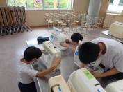 運動会に向けて応援団は昼休みも練習に励んでいます。自分たちで振り付けを考え、何度も練習しています。「先生に言われたから…」ではなく、自主的に行動していることが嬉しいです。もちろん、ほかの係の児童も休憩時間は大忙しです。学校のために働いてくれる6年生に感謝です。 |