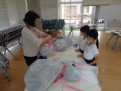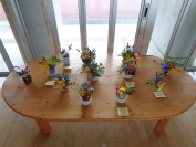 今日は、「オアシス」というフラワーアレンジメントで花を固定し、水分を供給するためのスポンジ状の資材を使って、「身近な花を飾ろう」をテーマに行いました。集中して、黙々と花に向き合う子供たち。いろいろなものを試しながら、自分オリジナルの作品を作っていました。これまでのクラブ活動で何回もやってきたことで、どんどん上達してきました。家でもやっている子もいるそうです。今日から多目的ホールに作品を展示しています!