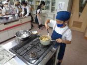 いいにおいが家庭科室の外にも広がり、他の学年の子供たちが「いいな〜。」「おいしそうだなぁ。」と口々に言っていました。