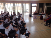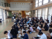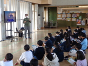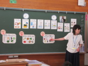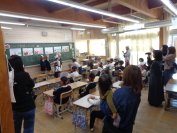 昨年度から、高学年に「外国語科」が設けられ、グローバル化が加速しています。赤ちゃんが自然に言葉を獲得していくように、小学校低学年の段階から英語に慣れることが大切だと言われています。廿日市市にはALTの先生が配置されているので、1年生から「生きた英語」を耳にすることができます。セス先生の楽しい授業に子どもたちは釘付けです。
