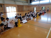 4年生の体育では、ポートボールをしています。高学年で学習するバスケットボールにつながる種目ですが、ドリブル・パス・シュートなどの基本動作は同じなので、子供たちの頭の中には「Bリーグ」の選手のように華麗なプレーが浮かんでいるかもしれません。Bリーグと言えば広島にはドラゴンフライズがありますね。いろんなプロスポーツ選手のプレーを見て、体育の授業を楽しんでもらいたいものです…