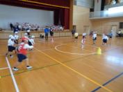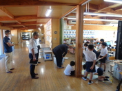 ニュー室内スポーツクラブでは今日、「モルック」と「ボッチャ」に挑戦しました。あっという間にルールを理解して、4〜6年生で楽しく行っていました。