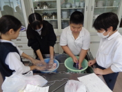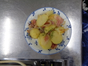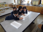 家庭科で「エコクッキングで、みんなでお弁当を食べようデー」と題して学習をしています。この学習のゴールは、自分でお弁当を作って、みんなで食べて小学校生活の楽しい思い出をつくること!今回は「エコ」を大きなテーマに掲げています。では「エコな視点」って?ということで、ベーコンポテトを作ることを通して、「エコな視点」を見つけました。水を出しっぱなしにしない。洗い物を少なくする。自分が食べられる量作る。材料を落とさない。食材の食べられる部分は、細かく切るなどして食べる。などなど、やってみたからこそ気付けた「エコな視点」がたくさんあったようです。