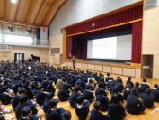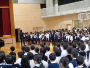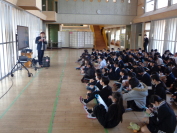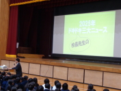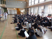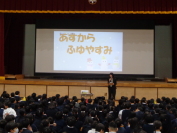 その後生徒指導主事の先生から「ふゆやすみ」を合言葉に、冬休みに気を付けてほしいことや意識してほしいことの話がありました。