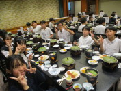 家庭科の調理実習で、ご飯を炊いて、みそ汁を作って食べました。普段は炊飯器で炊くことが多いご飯を、中の様子が外から見える透明な鍋で炊きました。中火〜強火〜弱火〜中火〜弱火、そして蒸らす。炊飯器ってすごいなぁ、ありがたいなぁと実感します。やや焦げた部分があるのは、頑張った証拠です。自分たちで作ったご飯とみそ汁は、いつも食べるものよりもおいしく感じるから不思議なものです。