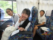 移動時間も修学旅行の楽しい時間の一つです。ガイドさんのバスレクや説明に加えて、自分たちで準備してきたゲームやカラオケで盛り上がりました。
