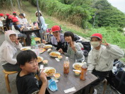 2日目の昼食は、野外炊飯でカレー作りました。湿気が多く、なかなか薪に火がつきにくい状況でしたが、どの班もおいしいカレーが完成しました!自分たちで作って、みんなで、大自然の中で食べるカレーは、格別でした!