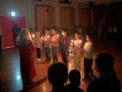 1日目の最後は、「キャンドルファイヤー」です。火の女神から分け与えられた火を、ろうそくからろうそくへとつないでいきました。ゆらゆらと揺れるろうそくの火は、神秘的です。
