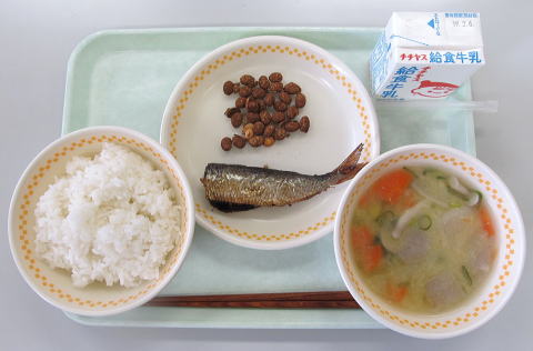 ご飯・牛乳・いわしの塩焼き・さつま汁・ココア大豆![]() |
