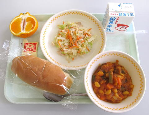 コッペパン・牛乳・白いんげん豆のトマト煮・ツナサラダ![]() |