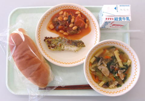 コッペパン・牛乳・チキンビーンズ・ごぼうとツナのマリネ![]() |