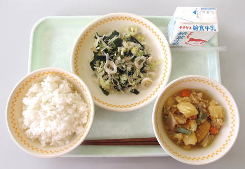 ご飯・牛乳・じゃがいものそぼろ煮・キャベツの酢の物![]() |