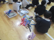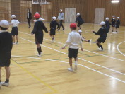 体育の時間に、なわとびの練習をしています。いろいろな技に挑戦中です。