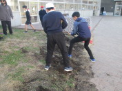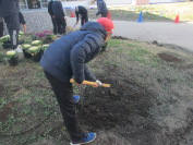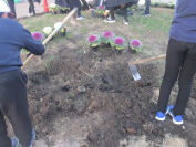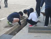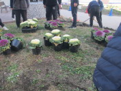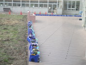生き物委員会の子どもたちが、中庭に葉ボタンなどを植えました。