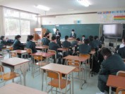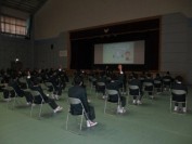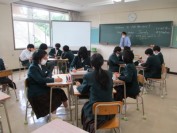本日午後,3年生対象に「佐伯高校プレオープンスクール」がありました。校長先生の挨拶後,教務主任の先生から,動画等を用いて,佐伯高校の魅力を説明していただきました。その後,3教科(英語・数学・地歴公民)に分かれて授業を受けました。生徒は,中学校とは異なる高校の授業に引き込まれていました。