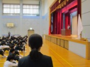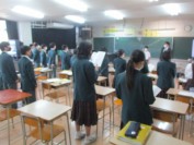 今日4時間目に修了式と認証式と離任式がありました。修了式では,校長先生が1年間の自分の成長の足跡を振り返ってみるように話されました。認証式では新生徒会が挨拶をしました。最後に,離任式では,生徒代表から去られる4名の先生へ,お礼の言葉が贈られました。吹奏楽部による校歌の演奏も久しぶりに聴けて,大変よい式になりました。