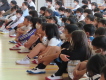 高学年の部では,5年生は「じゃんけん de ゴー!!」でじゃんけんの勝負でのそれぞれのコースを最後まで走り切っていました。また,6年生「リレー」は,バトンパスをしながら,力強く走り切る姿がありました。5年生の表現「Mela!」では,旗を巧みに使い,全員で動きを合わせて踊っていました。全員の動きが合った旗の音がグランドに響いていました。また,6年生の表現「体操 New Genesis」では,小学校生活最後の運動会,みんなで想いを一つにしながら,演技を行っていました。最後には,パネルに「心からの感謝の想い」「いつもありがとう!」と,感謝の気持ちを演技を通して,保護者,地域の方々へ伝えることができ,大きな拍手をいただきました。